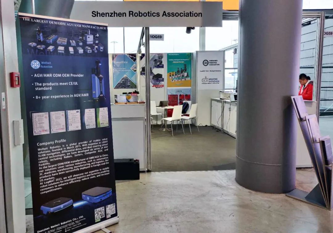 井智机器人参加德国斯图加特物流展,展示了我们最新的AGV/AMR机器人解决方案和物流自动化技术。本次展会是一个非常有意义的机会,让我们能够与来自世界各地的客户和合作伙伴进行深入的交流,分享我们的经验和知识,并了解全球物流自动化的最新趋势和发展方向。