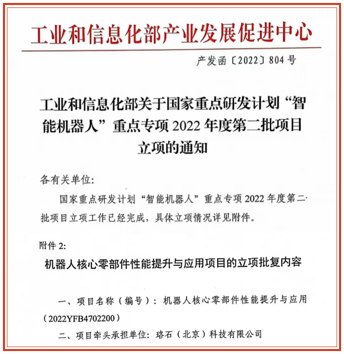 国家重点研发计划是我国当前最高级别的科技研发项目之一,此次“机器人核心零部件性能提升与应用”项目由珞石机器人牵头,联合重庆大学、苏州大学、埃斯顿自动化、中国软件评测中心、绿的谐波、浙江环动、西北工业大学、中科晶上、小米共10家优势单位合作完成。项目面向当前核心零部件性能提升需求,致力加快提高核心零部件的高精度、高可靠性、稳定性、可扩展性与智能性,研制出具有国际同类产品先进水平的机器人用关键核心零部件并实现推广应用,助力我国高端装备行业的跨越式发展。
