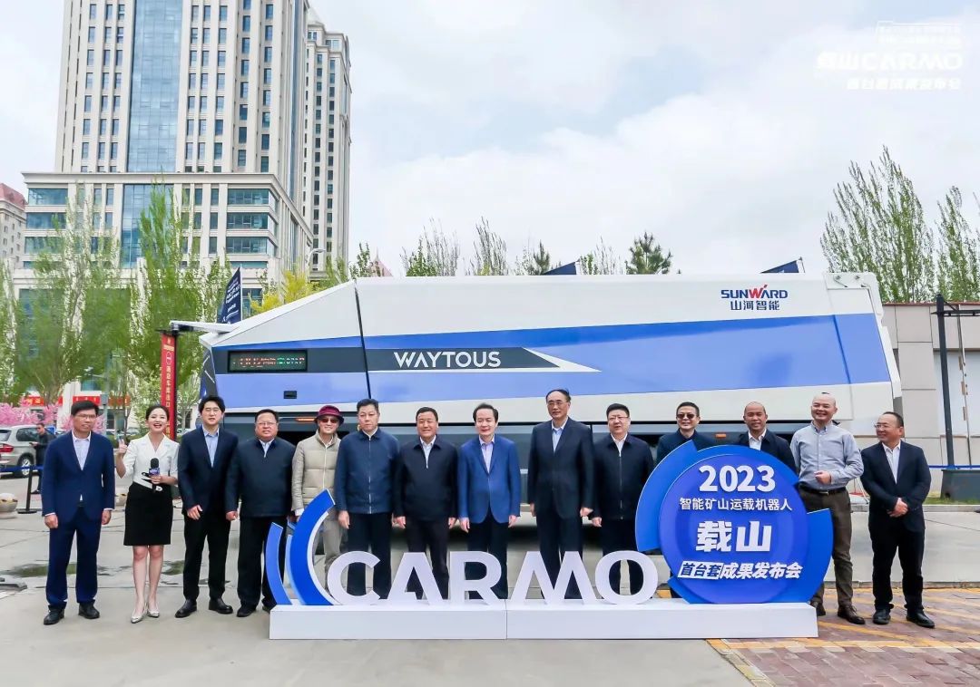 随后,“载山CarMo”在户外正式线下发布。杜汇良市长,葛世荣院士,牟克雄书记,孔繁飞副市长,张鹏程主任,华电煤业总经理、党委副书记王瑞,王飞跃教授,陈龙博士,王国勇院长,田会监事长,山河智能装备股份有限公司副总经理黄志雄等有关领导共同为矿山新能源智能运载机器人首台套成果启动揭幕。