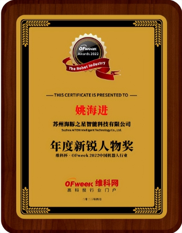 苏州海豚之星智能科技有限公司创始人姚海进先生荣获2022年度新锐人物奖