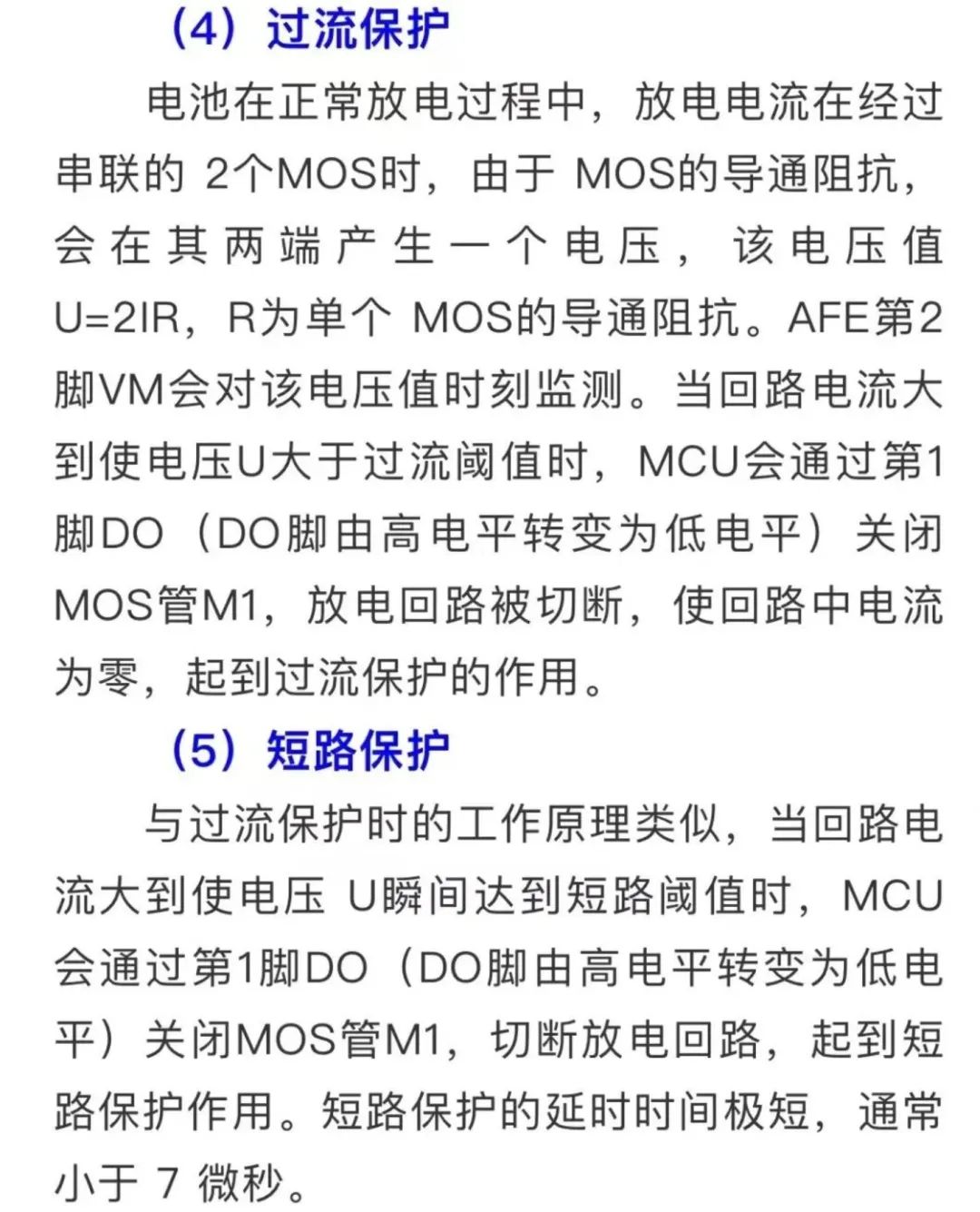 MCU芯片处理AFE芯片采集的信息,起到计算(比如SOC、SOP等)和控制(MOS关断、导通等)的作用,因此电池管理系统对MCU芯片的性能要求较高。AFE和MCU通过控制MOS来实现对电路的保护。