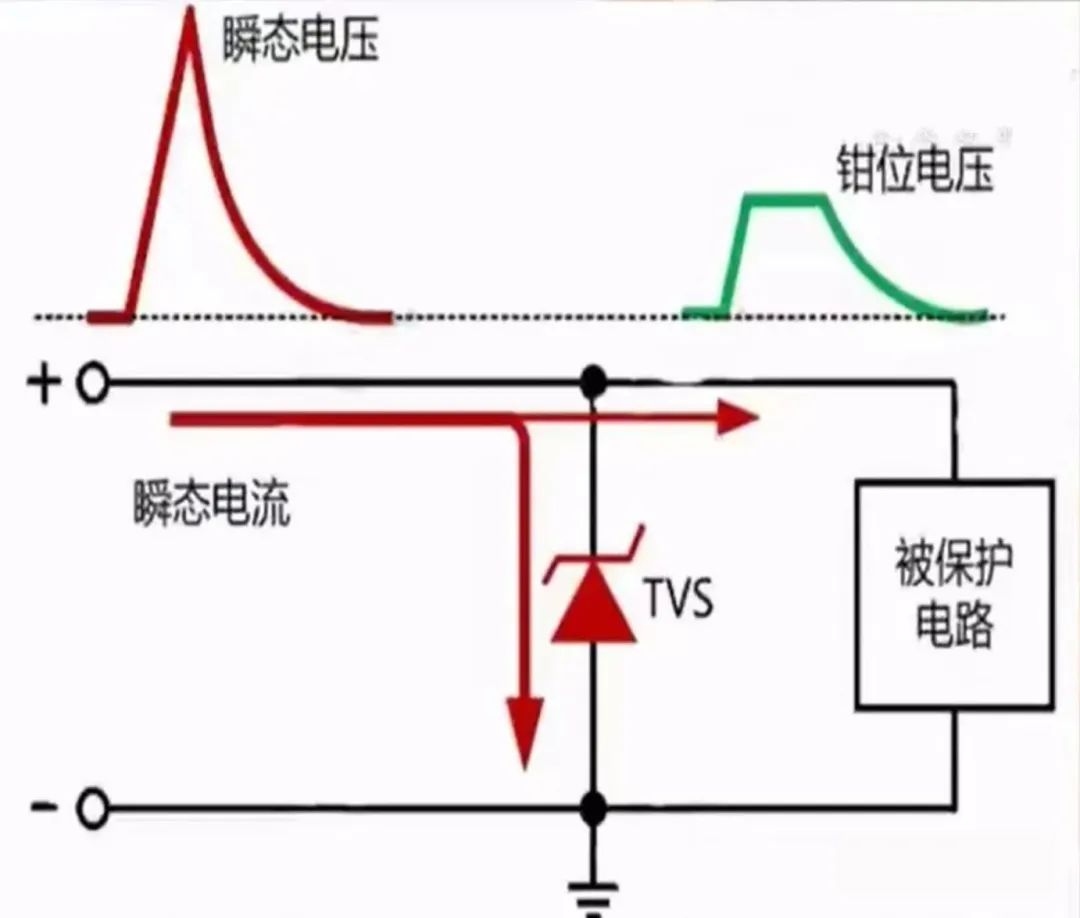当电路出现异常高电压时,TVS会迅速调整电阻状态,将瞬时电流释放到地,保护后级电路免遭损坏;异常电压情况结束后,TVS会复原。