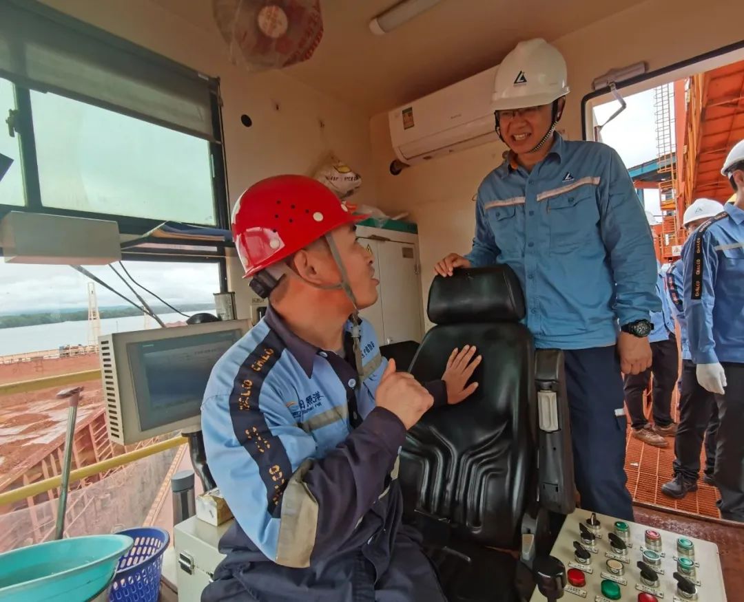 中铝股份总裁助理、中铝几内亚有限公司董事长杜小明,中远海运散货运输有限公司副总经理陈延与闫晓军一行就博法项目进行座谈。闫晓军对博法项目克服各种不利因素,高质量推进,累计装船量突破4000万吨大关表示由衷祝贺,对中铝几内亚给予中铝物流工作上的大力支持表示感谢。中铝物流会始终发扬“逢山开路、遇水架桥,跋山涉水、披荆斩棘”的精神,安全、高效完成港口运维、驳运调度、远洋运输等任务,下一步会积极做好船东沟通协调、港口装船组织和相关船舶安排,为项目运输提供优质服务和保障。
