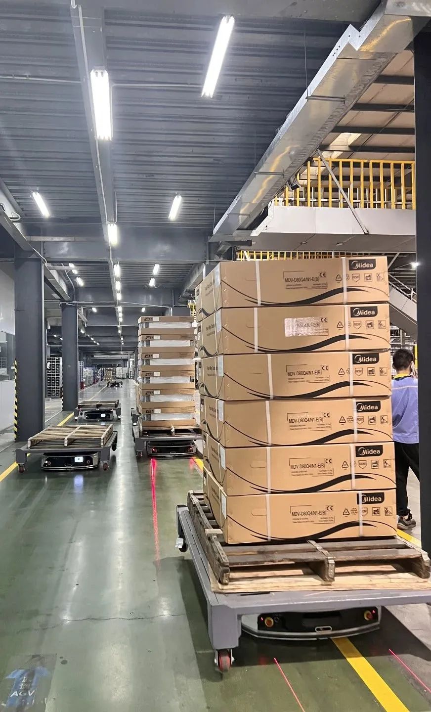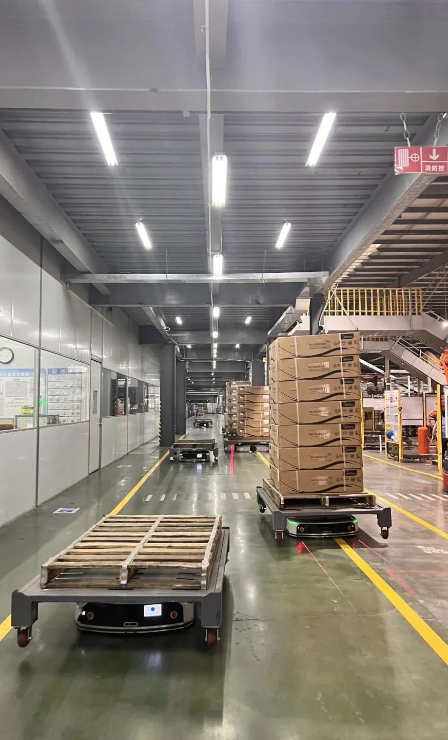 在一年以前,工厂存在产线之间的物料/半成品流转难题,每层车间都有临时堆叠区,大部分同楼层周转、偶尔跨楼层周转作业存在痛点。一年后,这座工厂已经顺利改造投产,并开放为优秀的智能工厂参观示范产。