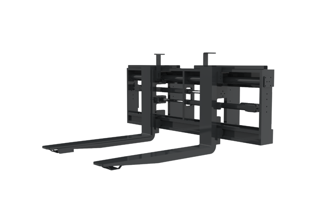 木牛流马电动调距叉,额定载重为1000kg-3000kg,调距范围是250mm-1220mm,基本覆盖大部分工业应用场景。