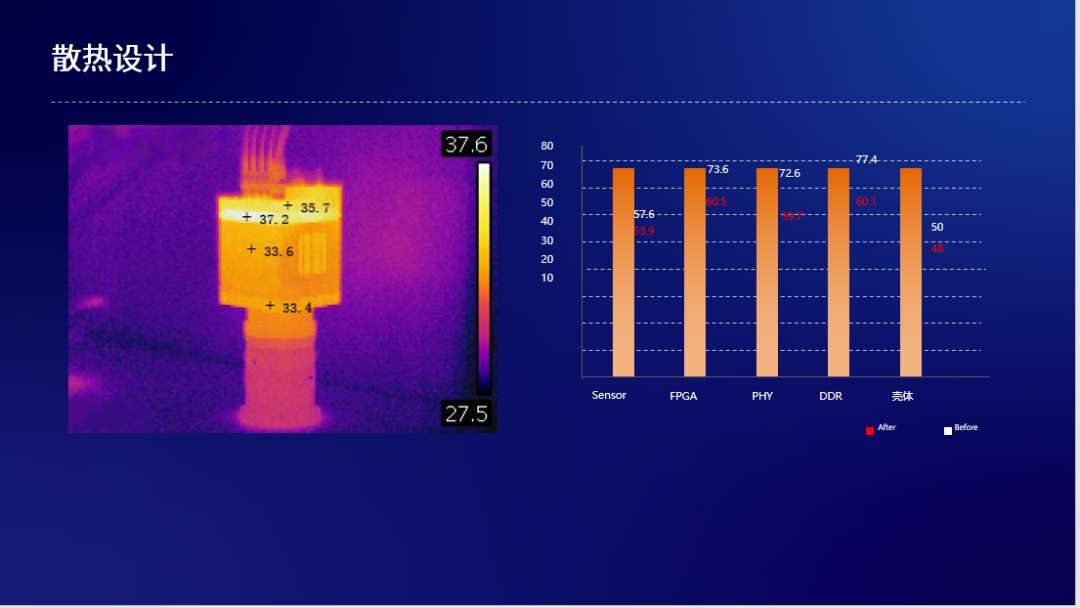 华睿科技优秀的散热设计,保证了较低的相机温度和优秀的图像效果。