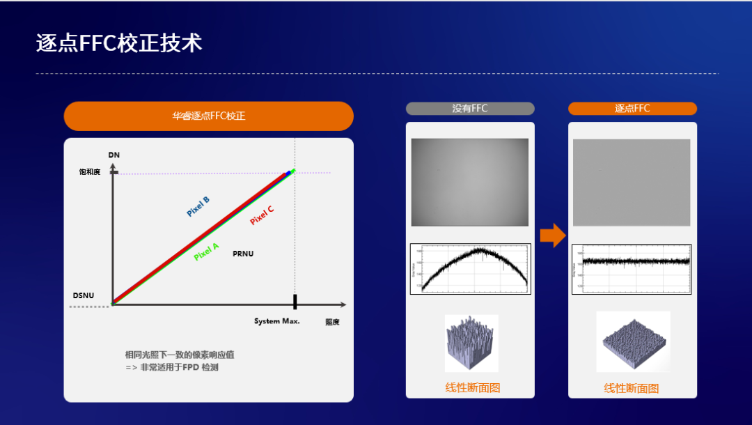 华睿科技自研的逐点FFC校正技术,保证获得较高的图像检查可靠性。