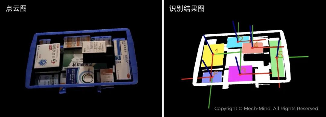 • Mech-Eye PRO S精度高,速度快,可对各种药盒快速生成高质量点云。