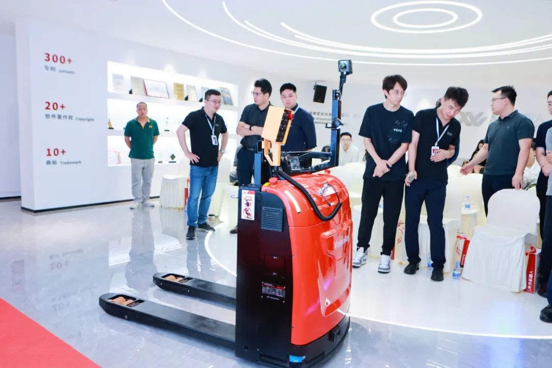 未来机器人CEO李陆洋向到来的嘉宾介绍这款新品的性能与优势。VNST20无人叉车以一颗3D激光,集成感知、定位和立体防护于一体,专为平面搬运场景而生,从设计,功能及实操应用,秉行大道至简的原则,为客户提供高效、简约的平面搬运场景的解决方案。