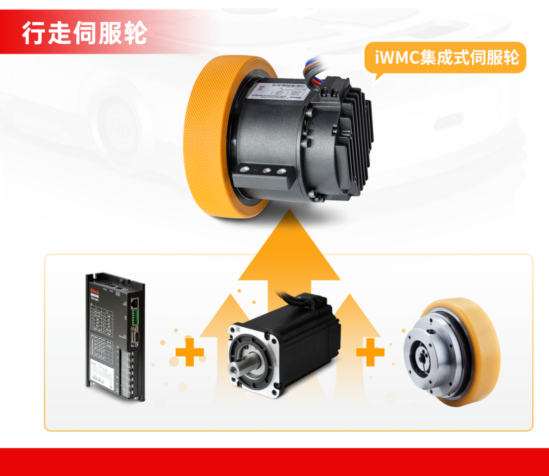 驱动器、电机、减速机、轮子四大主要部件高度集成化,结构紧凑,有利于车体小型化,节省35%以上空间;
