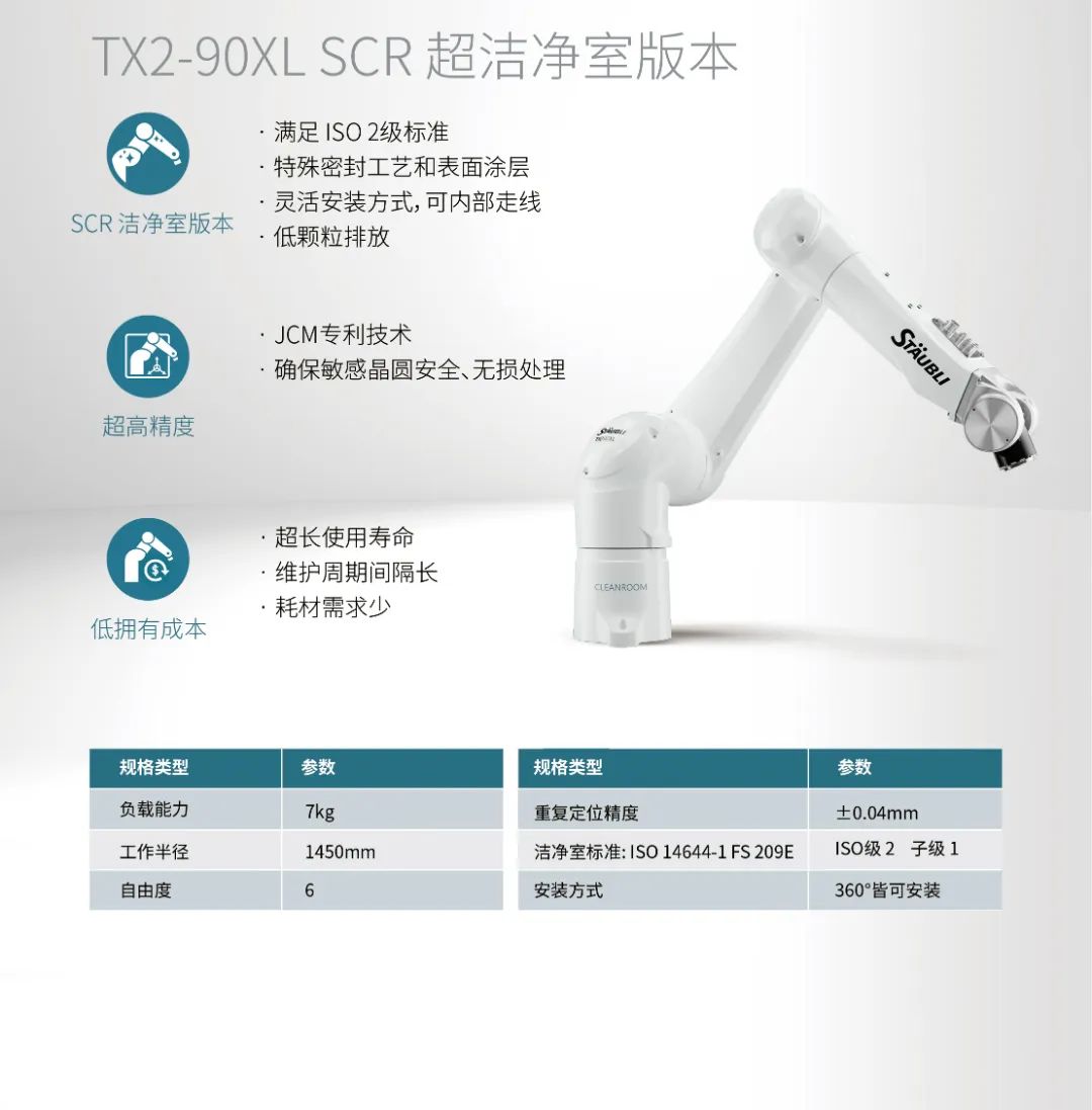 同时,史陶比尔 TX2-90XL SCR 六轴机器人作为 CubeStocker 系统的核心,在洁净度、可靠性、重复定位精度、安全搬运等方面都满足了敏感晶圆搬运的严苛要求:
