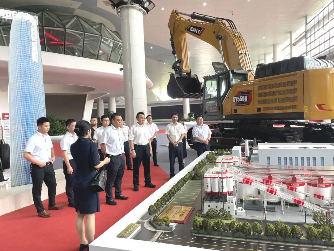 签约仪式前,武汉动力再生公司嘉宾一行参观了三一集团展厅及18号厂房灯塔工厂,郭承志向张宇平一行介绍了三一的发展历史、核心产品、重大事件、经营业绩以及“3个3”智能制造变革战略。