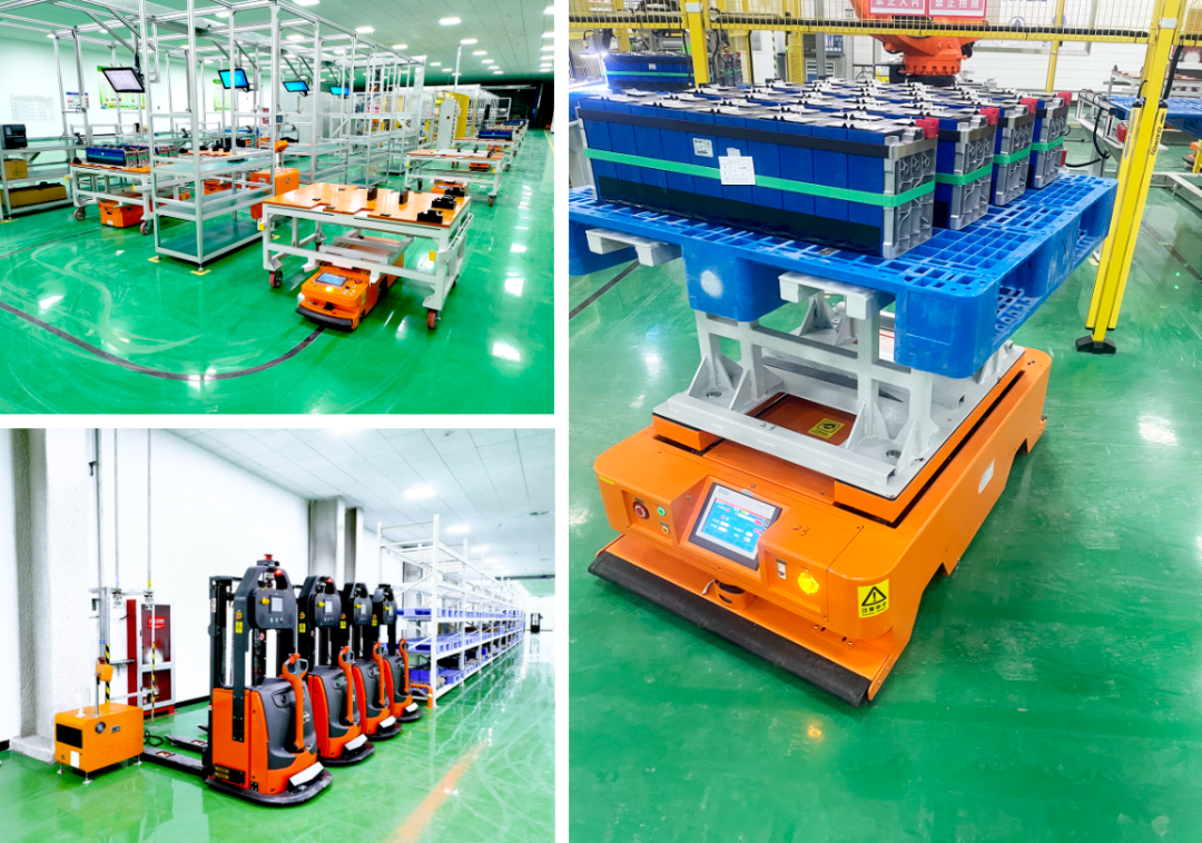 本项目为储能企业电芯配送-模组下线-PACK整线整厂智慧物流项目,佳顺智能助力客户实现箱体预制、自动涂胶、模组自动入箱、气密性测试、物料自动配送、产品下线转运等功能,同时解决上游模组线电芯走动送料、模组下线自动缓存等问题。
