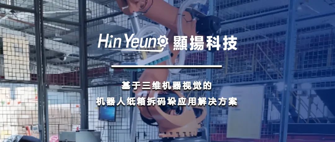 该解决方案包括三维视觉系统、机械臂和夹具、智能控制系统。三维视觉系统选用的是显扬科技HY-M5三维视觉系统,该系统成像快、精度高。HY-M5扫描速度为10-300Hz,扫描精度能精确至±0.01mm,配合自研智能算法,可以快速扫描和获取纸箱的尺寸、形状、