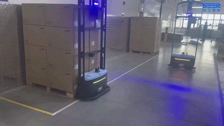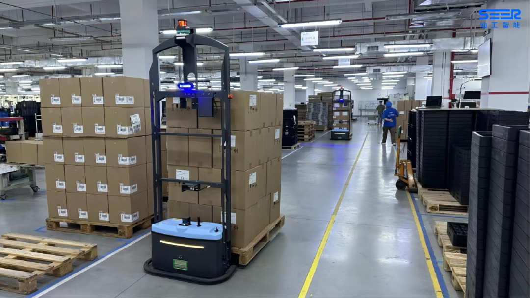 经过多重筛选,该企业国内生产车间选择了仙工智能移动机器人产品组合,现场应用内置 SRC 控制器的激光 SLAM 地面式智能叉车,进行远距离货物搬运。