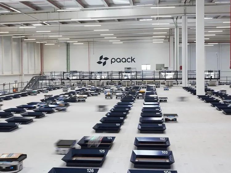 在海外复杂项目部署方面,极智嘉也帮助欧洲知名电商交付解决方案提供商Paack部署超大规模拣分结合方案,在极智嘉智能调度系统的支持下,S系列分拣机器人与P系列拣选机器人协同合作,为客户提供从分拣到收换箱环节全流程机器人自动化解决方案。