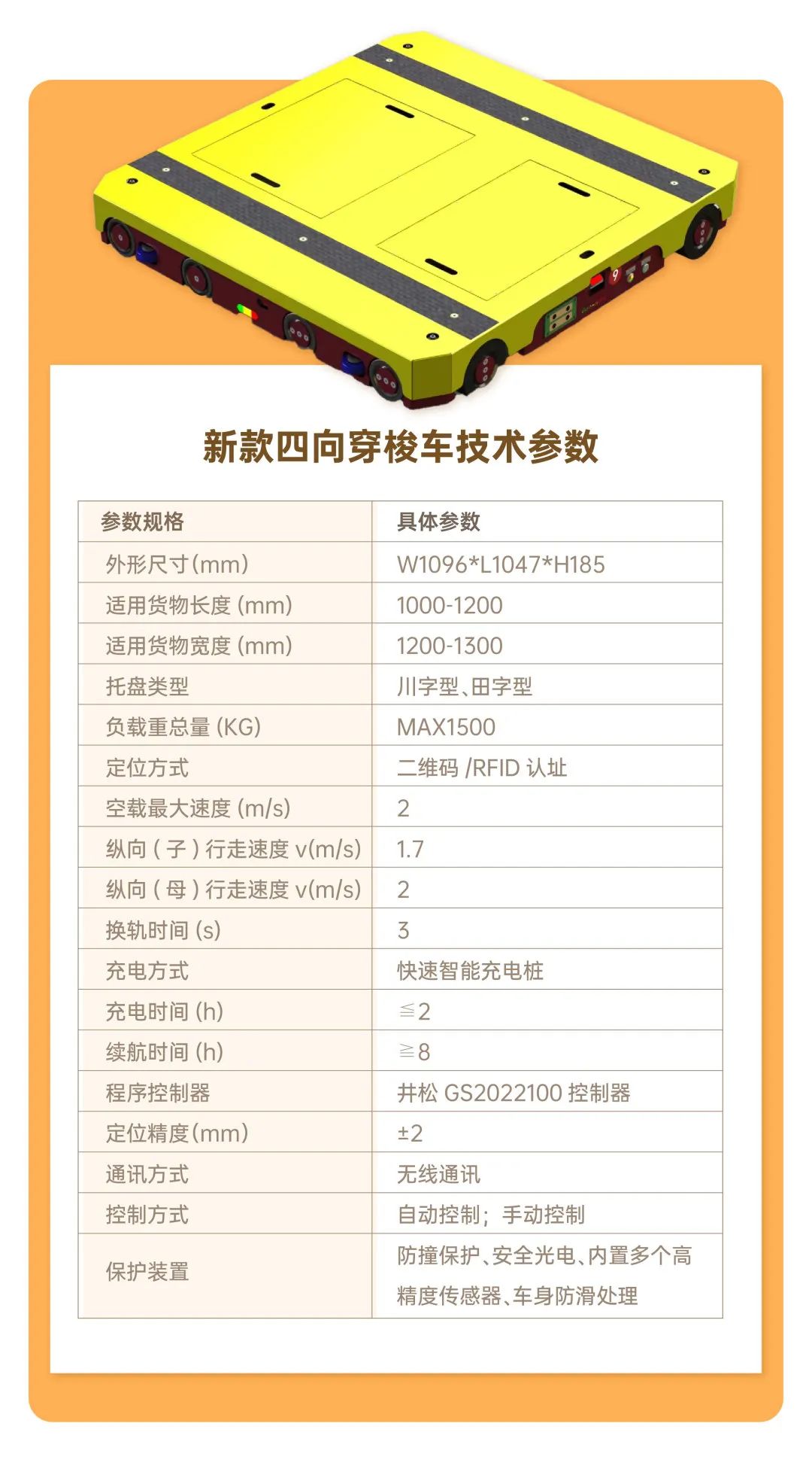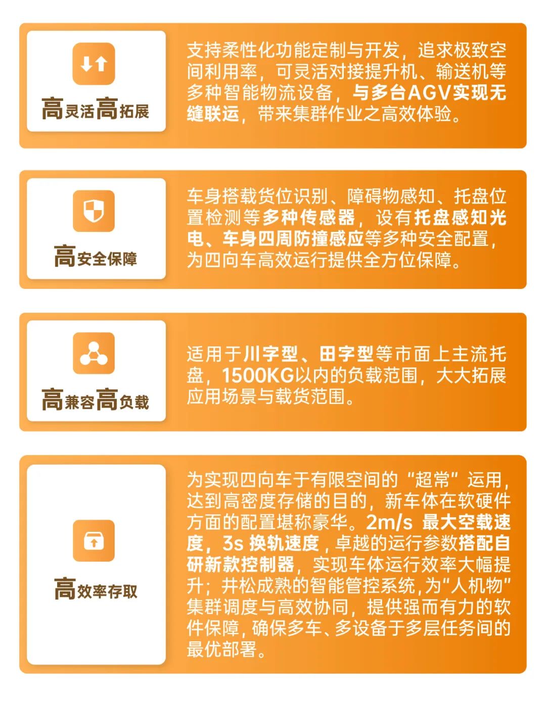 要解决上述问题,智能四向车立库方案堪称首选。该方案以托盘四向穿梭车为核心,通过智能物流技术与装备,实现车体于货架内四向行驶和物料的高效存取,达到多场景灵活应用、高密度存储的目的。井松智能基于16载智能制造经验,提炼、总结大量软硬件设备系统研制与应用心得,重磅推出新一代四向穿梭车。
