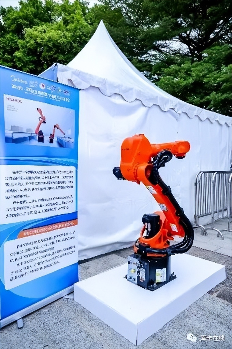 在美的·顺德半程马拉松的起点北滘门广场,展示了另一款重量级机器人——KR CYBERTEC-2系列的KR 20 R1810-2 E,此款工业机器人与节省空间的单元精简设计理念完美契合,可满足各种应用场景如搬运、打磨、装配、上下料、包装、码垛、弧焊等,A6轴转动惯量达1.2kg·㎡ ,在行业同等机型中,属于领先地位。