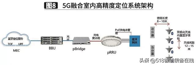蓝牙网关通过网线连接pRRU的POE口,pRRU为蓝牙网关供电。同时,蓝牙网关有级联网口,可以连接多个,BBU通过光纤将数据回传至MEC。