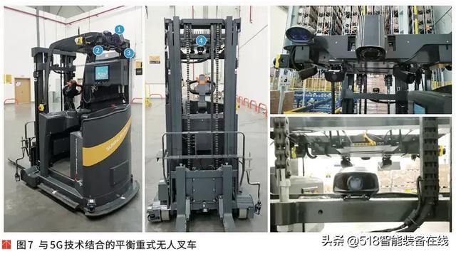 本次5G项目落地实施主要聚焦于5G与视觉及边缘计算的结合:在基于视觉技术的无人叉车顶部安装4个高清相机(如图7),利用5G技术连接至高速虚拟专网,与视觉图像处理服务器相连,实时获取行车记录仪的图像数据。通过对无人车辆异常情况的远程图像反馈与控制,实现部分基于视觉的障碍物识别与测量。本次应用包括以下边缘计算与控制功能: