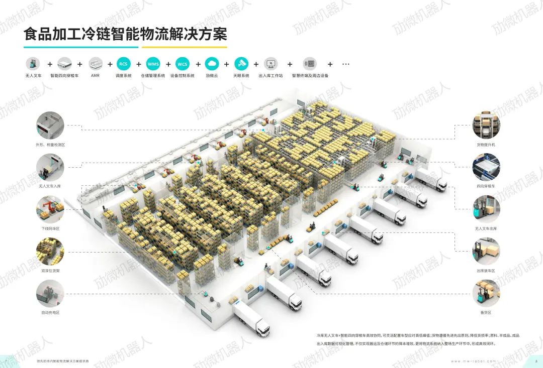 领先的场内智能物流解决方案提供商-劢微机器人,结合行业痛点属性和客户需求,重磅推出适用于冷链行业场内物流环节的无人叉车解决方案,突破低温环境下无人叉车应用瓶颈。