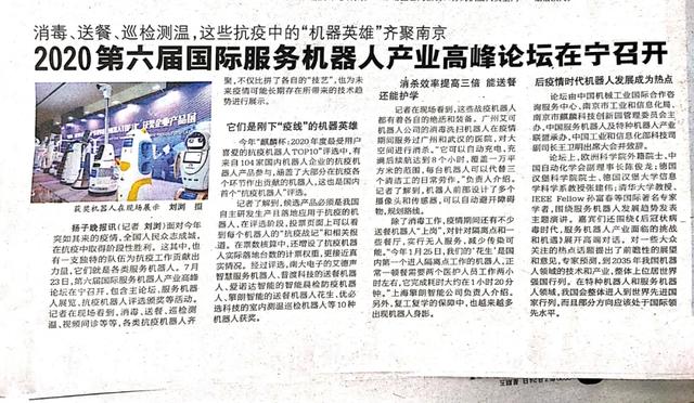 7月23日第六届国际服务机器人产业高峰论坛在宁召开,论坛以“把脉科创趋势,捕捉抗疫契机,适应消费升级,开拓巩固刚需”为主题,包含主论坛、服务机器人展览、抗疫机器人评选颁奖典礼、南京市麒麟科技创新园专业考察等系列活动。