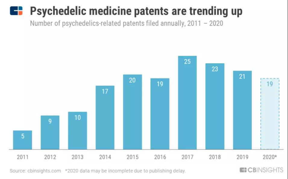 图 | 迷幻药物领域专利数量(来源:CB Insights)