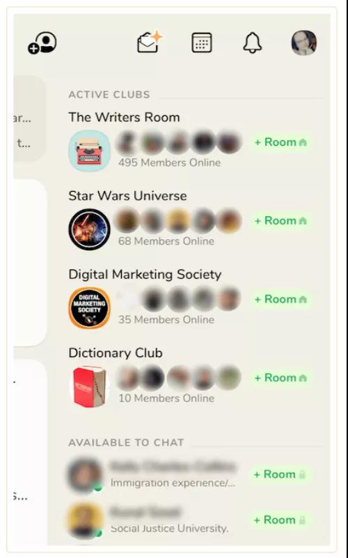 以 Clubhouse 为例,这款邀请制应用允许用户在特定主题的“房间”内语音聊天。用户可以参加书友会、政治讨论、主持说唱比赛等等,所有内容均来自于用户。