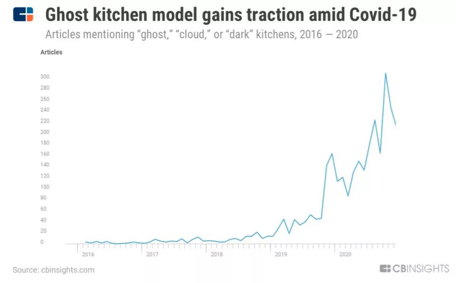 图 | 疫情期间关于“幽灵厨房”的报道(来源:CB Insights)