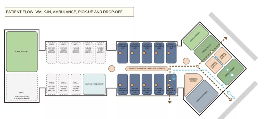 此外,新冠疫情也加速了医疗健康领域的空间利用。虽然小教堂、自助餐厅、停车场等都已经变成了临时医院,但考虑到空间多样性及数量,购物中心表现出了巨大的潜力。Time Equities 拥有多家购物中心,该公司表示,其在其佐治亚州的一个购物中心里,越来越多的医生和牙医开始在那里签订租约。