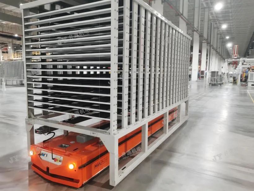 在此过程中,井源技术团队根据这些工装/台车尺寸、结构、承载重心等设计合适的AGV,在AGV系统调度下,实现不同工装、不同负载、不同工艺间有条不紊的运输,以及不同区域的智能化仓储管理。AGV的运用,替代了3台堆垛机和出入库的输送线,为企业节省成本300多万元。