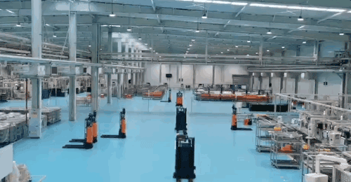 青山工业根据零部件特性和配送方式的多样性,在DCT二期项目建设中引入海康机器人AMR产品和解决方案,投入使用数十台潜伏及叉取AMR,实现生产车间内零部件存储、配送的全流程物流自动化。