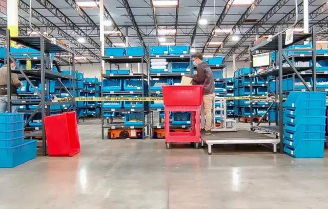世界少见的大规模料箱到人机器人仓