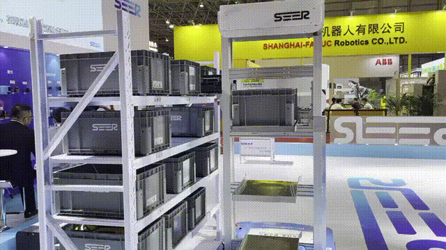 由仙工智能(SEER)与海柔强强合作,全新推出的全球首款激光 SLAM 多层料箱机器人也亮相本次展会,这款激光 SLAM 多层料箱机器人内置 SRC 核心控制器,可以实现柔性对接、精准取放,实现料箱的高效搬运,是工厂线边仓的最佳搬运拍档。