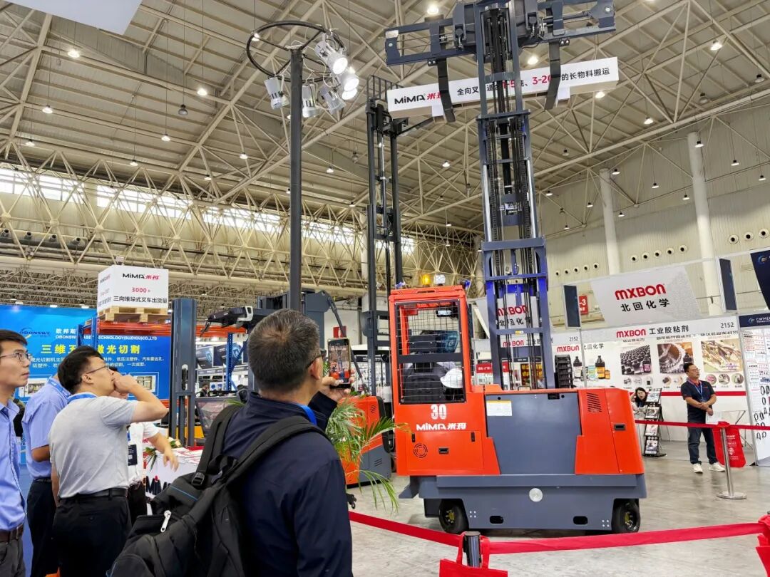 现场技术人员通过实际操作演示,向观众展示MiMA叉车在窄通道内的灵活性和精准性。不少客户对MiMA的产品表现出浓厚兴趣,尤其关注超窄通道叉车的具体应用。