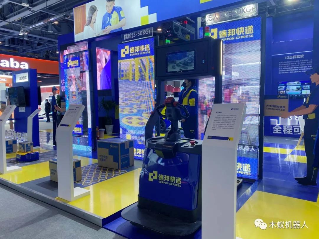 木蚁作为德邦快递的场景战略合作伙伴之一,受德邦快递邀约,“定制款”的无人叉车也亮相本次博览会。
