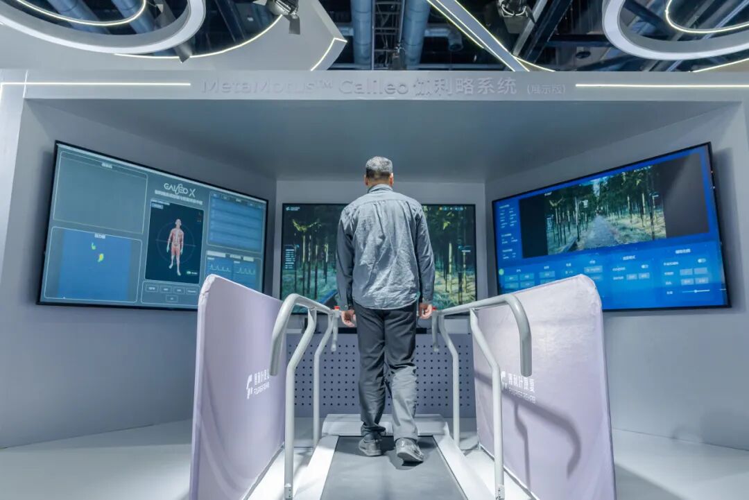其展示版首次在康复专业展会亮相,为使用者带来沉浸式康复训练体验。在基于虚拟现实技术打造的理安寺场景中,使用者可进行步行和爬坡训练,并融入嗅觉体验,实现视觉、听觉、触觉、嗅觉与本体觉的多感官协同。结合动作捕捉技术,该系统可实时采集使用者的动作数据,用于功能评估和场景交互。