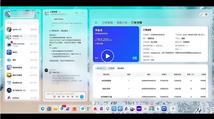 更令人惊艳的是,在“工业AI智能体”全球首发区有一场“云端决策+终端执行”的闭环演示:一旁的数字大屏上,一位“AI跟单员”——磅旗“数字白领”智能体的化身,正以1300倍于人力的效率处理跨境订单数据,实时生成最优分拣方案,同步指令具身机器人与AGV协同作业。