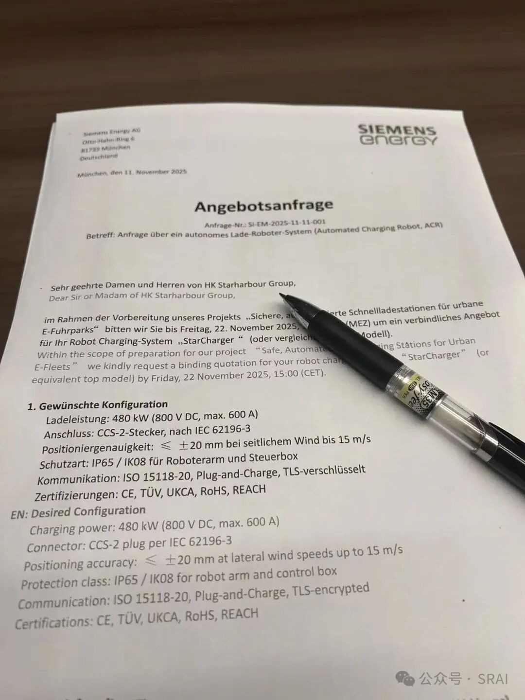 据了解,此次表达合作意向的企业涵盖德国能源集团与车企配套服务商,看中其“桩找车”创新模式与全场景适配能力。而来自中国的星港集团在上海的研发中心,研发出的星烁充电机器人,恰好精准破局解决他们的痛点:这款充电机器人搭载了104kWh电池包,采用100kW快充技术,基于自研的锦毛虎V2四轮八驱全向底盘,不仅可以实现360°灵活移动,还可以适配任意停车角度,斜线或横向移动,特别适合在停车场的狭小空间,无需改造电网即可轻松部署。