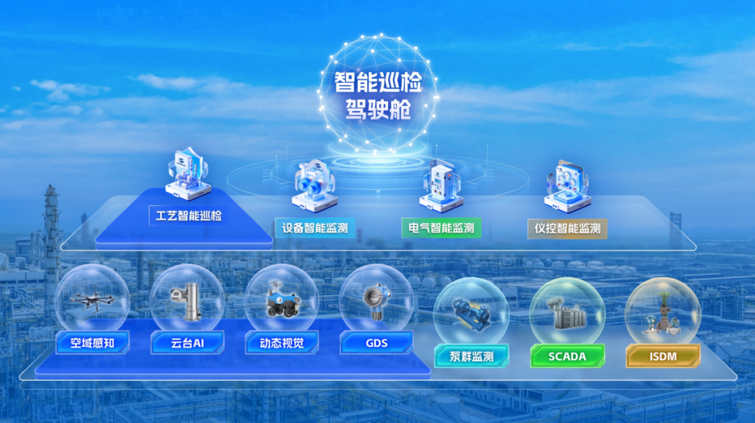 智能巡检驾驶舱是整个系统的“指挥中枢”。它将工艺智能巡检及机器人巡检、仪表监测数据、电气监测系统报警、设备泵群监测数据融为一体,实现可视化统一管理。
