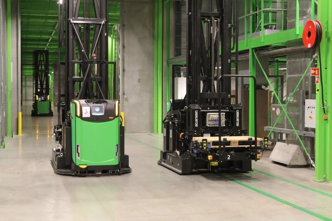 在这座占地32,000㎡的物流枢纽内,9台Rocla超窄巷道自动导引车(VNA AGVs)正由科尔摩根核心技术驱动,实现全天候精准、高效的无人搬运作业。