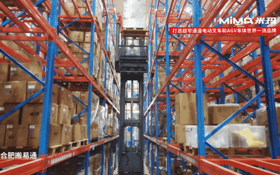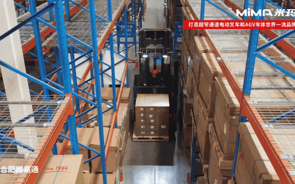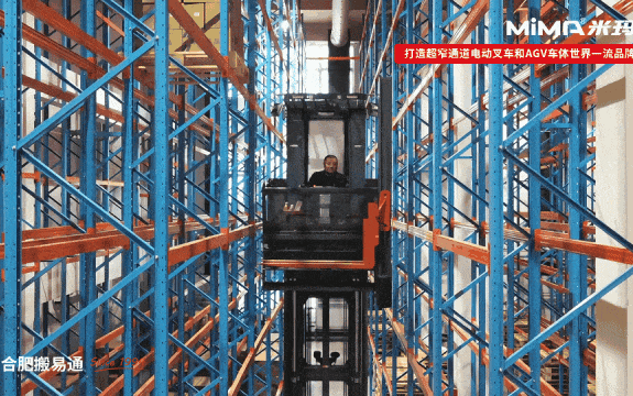 MCC16额定载荷1.6吨,标准起升高度可达14.2米,定制高度可达18.5米,配备 180° 旋转货叉与左右侧移功能,在仅1.65米的超窄通道内无需转弯即可灵活叉取货物,大幅提升仓储空间利用率与作业效率。