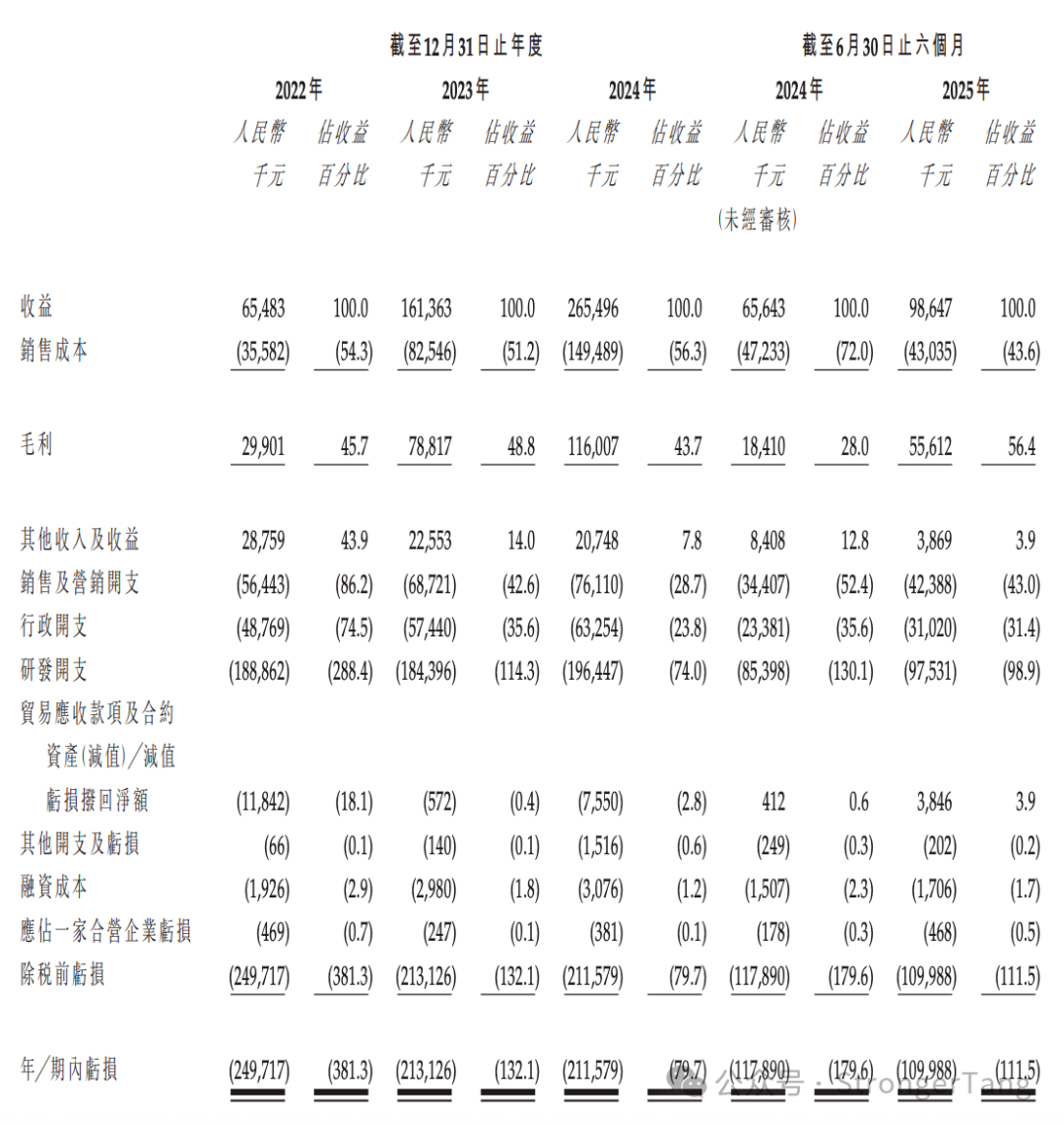 尽管驭势科技在业务布局上呈现全面开花之势,但财务状况却不容乐观,增收不盈利的困境凸显。2022-2024年,公司营业收入从6548万元增长至2.65亿元,复合增长率显著,年均复合增长率约110%,2025年上半年实现营收9865万元。然而,盈利情况却与之形成鲜明对比,同期公司年内亏损分别约为2.5亿元、2.13亿元、2.12亿元,三年累计亏损额达到6.75亿元,2025年上半年净亏损1.10亿元,三年半累计亏损达7.85亿元。