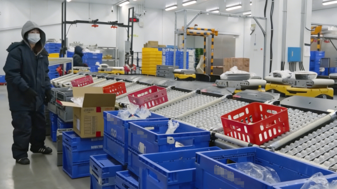 放在以前,这样的深夜低温仓,是分拣员们最煎熬的战场。作为大型零售连锁的物流枢纽,这里要处理成千上万种 SKU—— 从常温的饮料零食,到必须全程低温保鲜的冷冻食材,补货节奏快,促销季和节假日的订单更是堆成小山。分拣员们得裹着厚厚的防寒服,低温里一站就是数小时,双手戴着厚手套,既要精准作业,又要体力搬运,重复无数次动作。