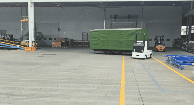 项目引入了蚂蚁无人驾驶牵引车以及RCS软件系统的一体化智慧物流解决方案,精准破解室外重载搬运难题。