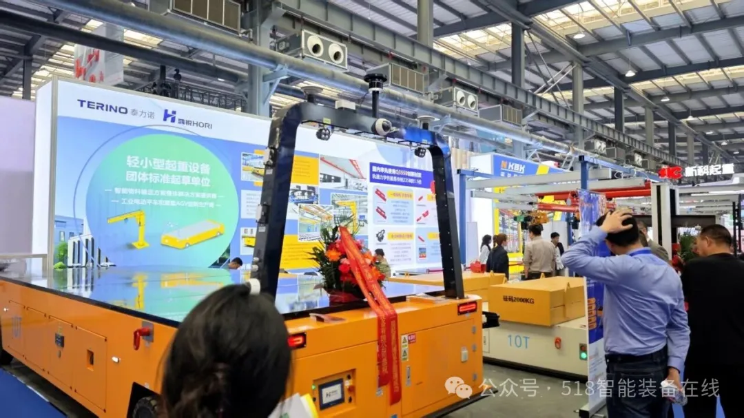新科起重聚焦智能起重领域,现场展示全自动无人行车、吨袋装卸机器人及无人叉车AGV,凭借大吨位铝卷材智能起重机核心技术,彰显无人化仓储搬运领先实力。