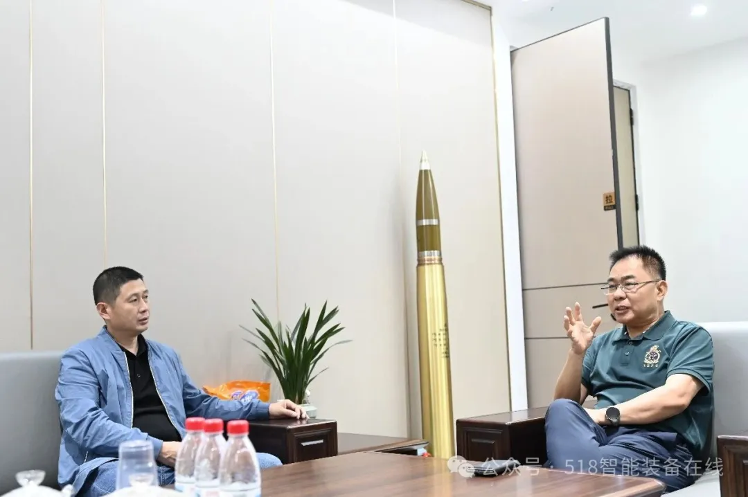 深圳瑞朗特防爆总经理谷庆衡(右)与518智能装备在线郝瑞(左)交流中