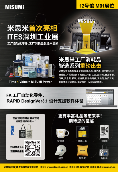 全球制造业的坚实后盾---MiSUMi米思米,首次亮相ITES深圳工业展。米思米工厂消耗品智选系列重磅出击。米思米智选系列一直沿用“高品质,低价格,短交期”的经营理念,在所有商品的产地、工艺、原材料,甄选手套,口罩,安全鞋,胶带,缠绕膜,防静电用品,清洗剂,生产工具等各类工业必需品的环节做足把控,尽全力满足买家的一站式采购需求。