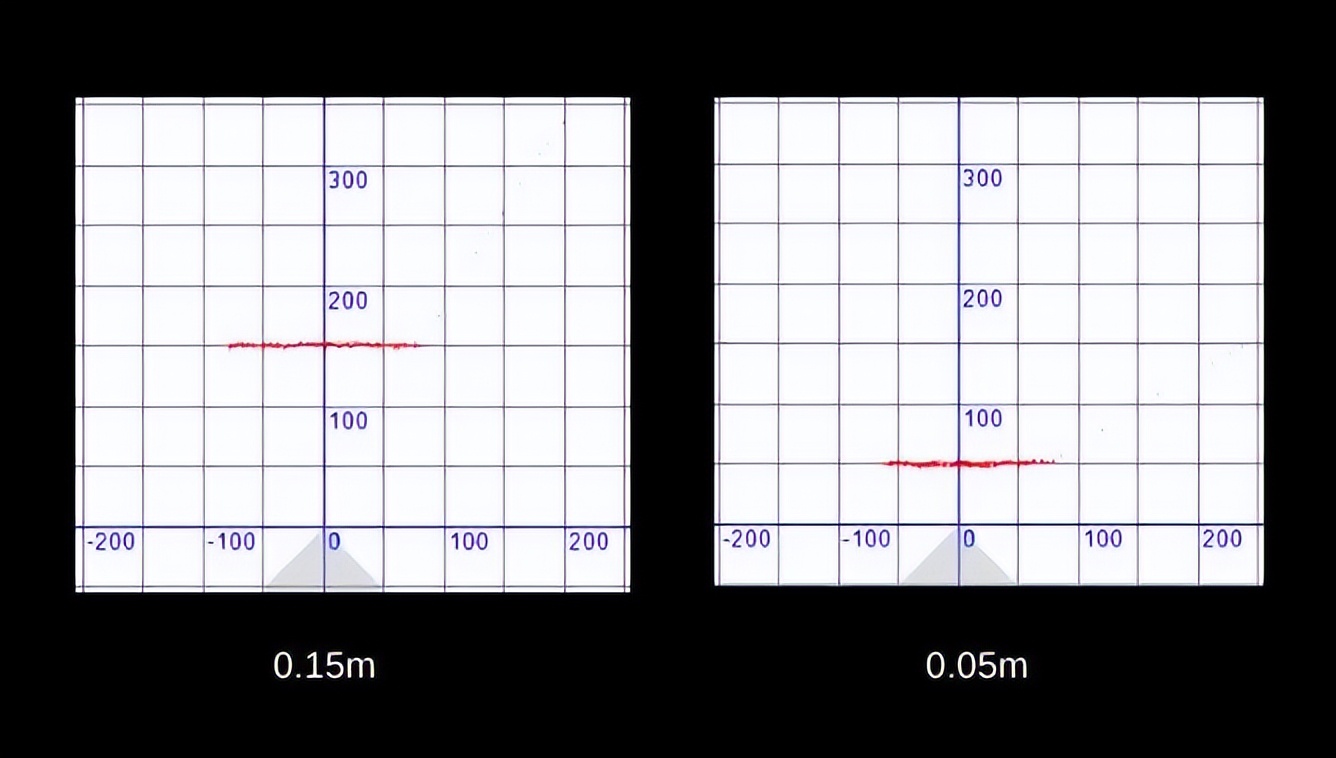 通过对光路收发系统的架构进行优化,万集716Mini在侧“近”能力上表现优秀,在难度极高的近距离测视里,当雷达距测试纸板只有0.05m时,依然有清晰的点云数据。