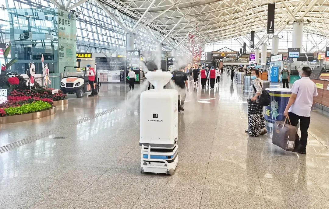 与高铁站类似的是机场场景下的运用,同样作为重要交通枢纽,环境安全与人民生命安全密切相关,无人终端的运用也是智慧机场搭建的重要指标之一,以消毒机器人的运用,在空气消杀上提供便捷,既节省人力又能提升效率。